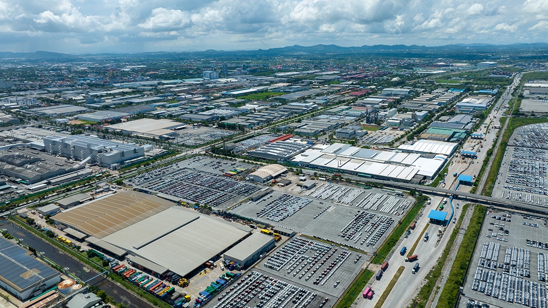 Muitos carros novos estacionando antes do envio ao cliente do revendedor, carros