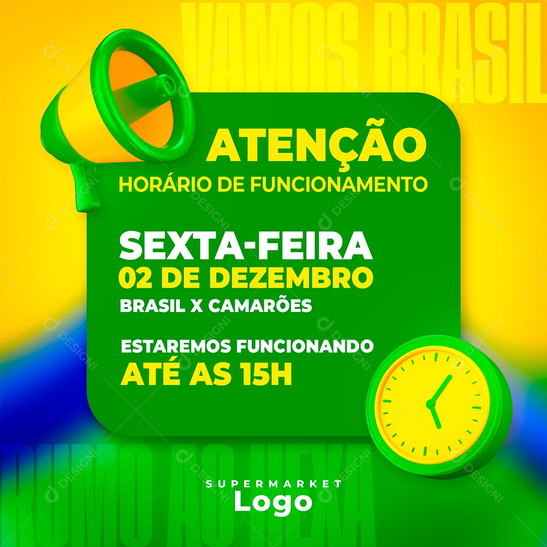 Horário Jogo Brasil e Camarões Copa 2022 Social Media PSD Editável