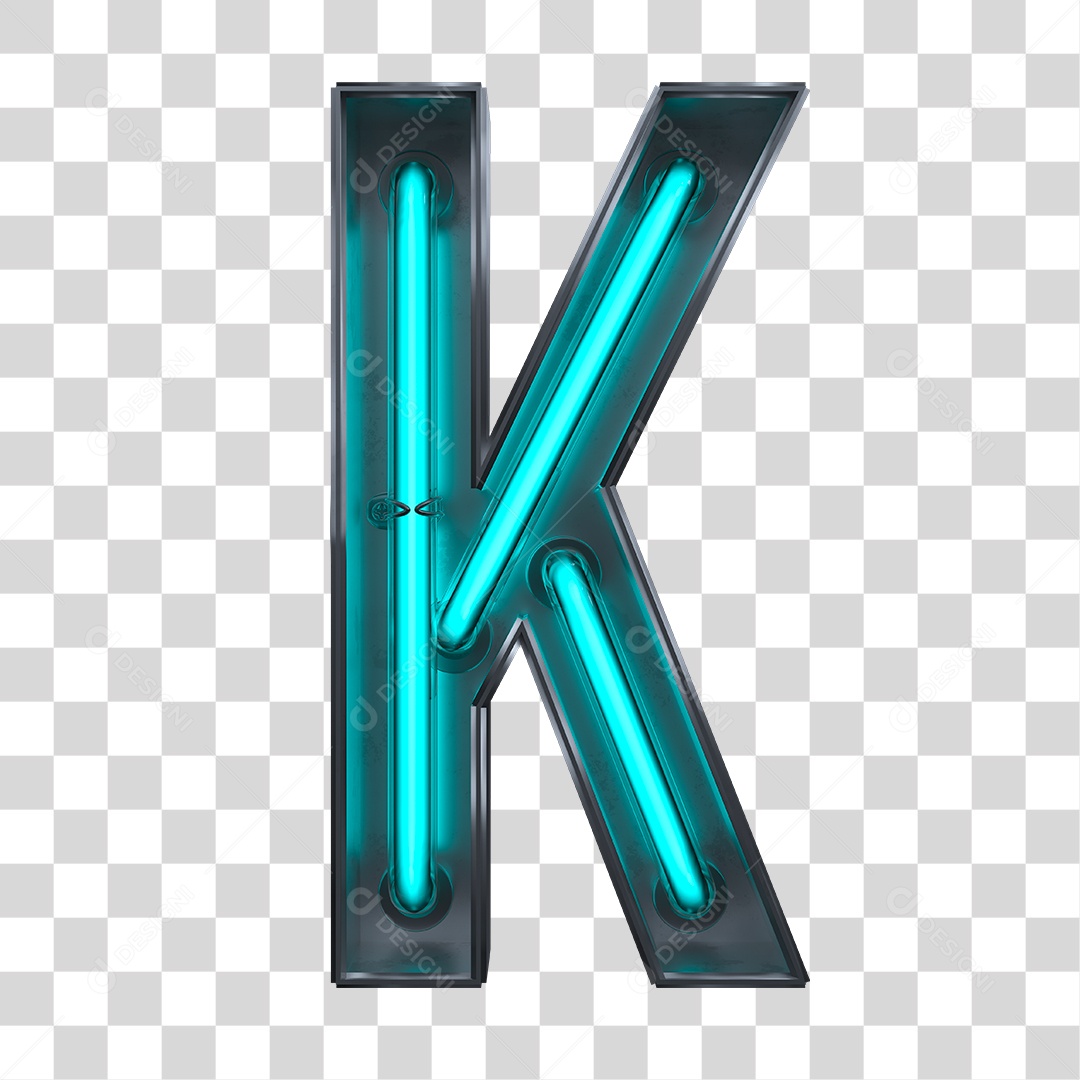 Elemento 3D Letra K Neon Azul PNG Transparente