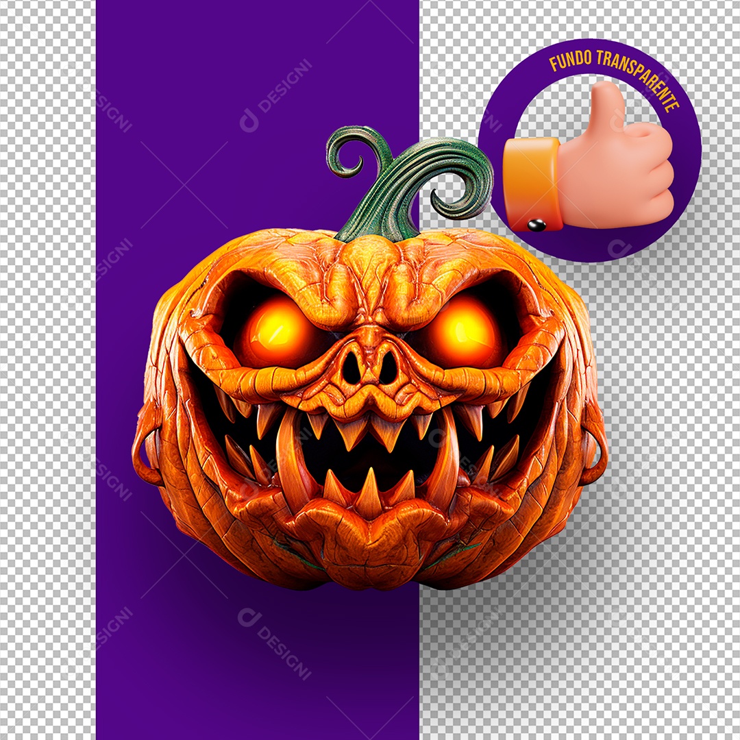 Cabeça de Abóbora Assustadora de Halloween Elemento 3D para Composição PSD