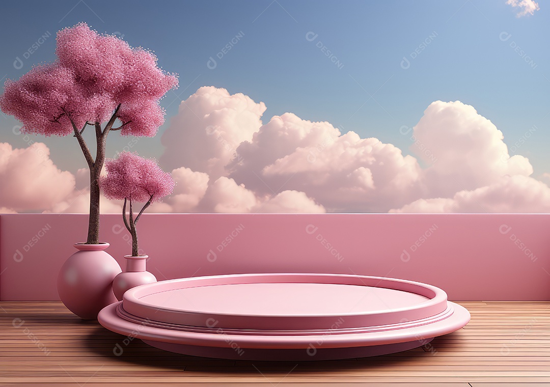 Fundo abstrato com pódio rosa e nuvem mínima verão
