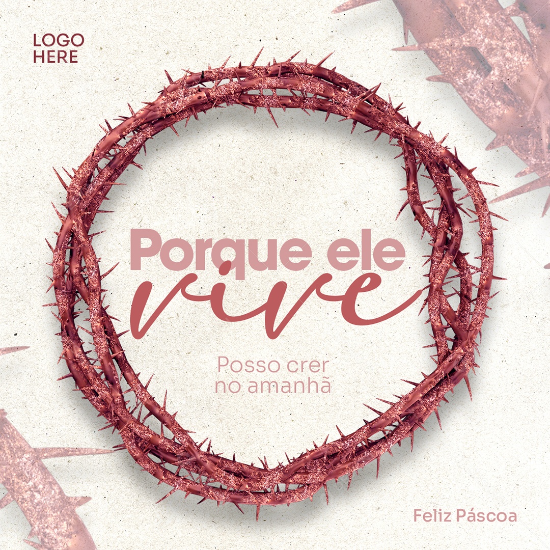 Porque Ele Vive Posso Crer No Amanhã Feliz Páscoa Semana Santa Social Media PSD Editável