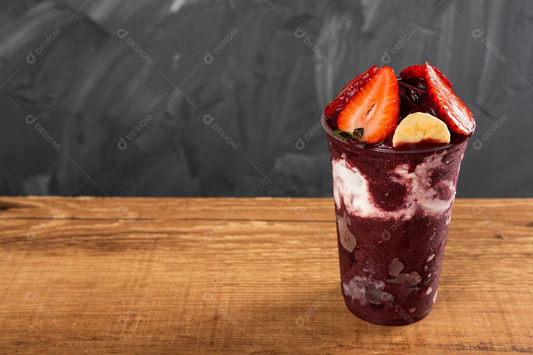 Batido De Sorvete Brasileiro De Açaí Berry Congelado Em Copo De Plá...