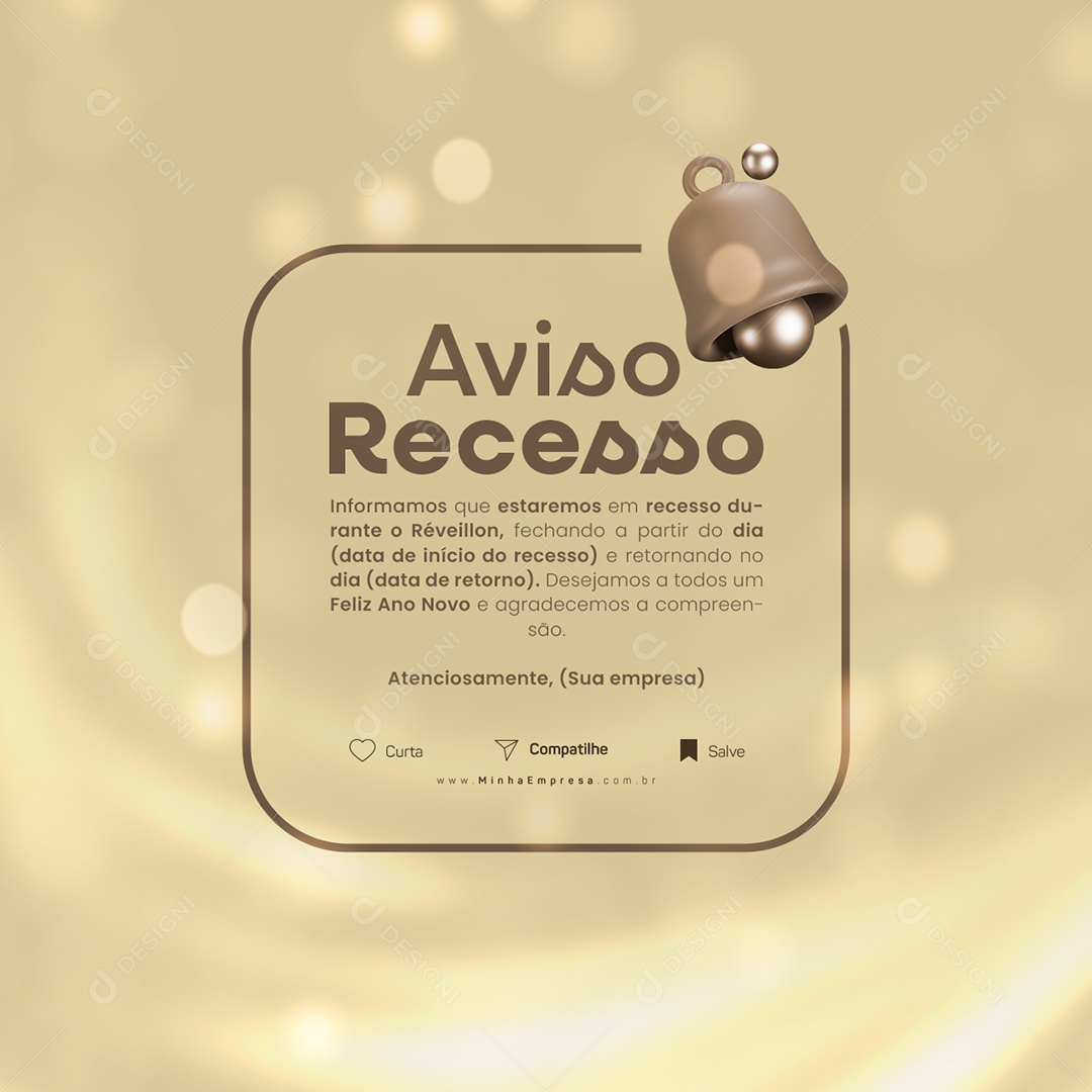 Aviso Recesso Empresa Informamos que Estaremos em Recesso Durante o Réveillon Social Media PSD Editável