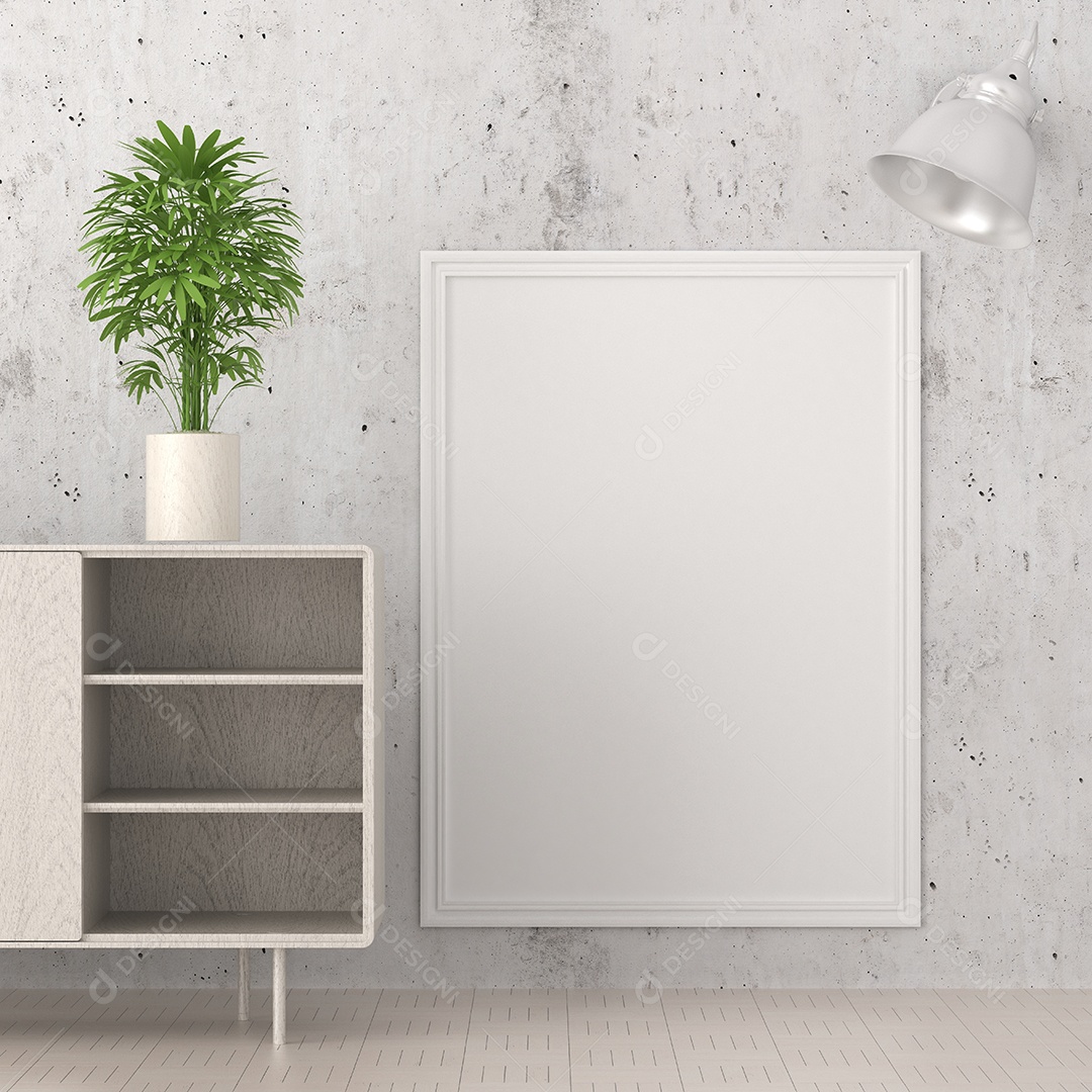 Molduras para fotos de maquete de ilustração 3D na parede da sala d...
