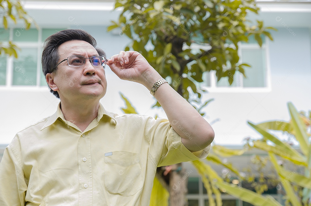 Homens idosos de óculos estão pensando, preocupados e sérios