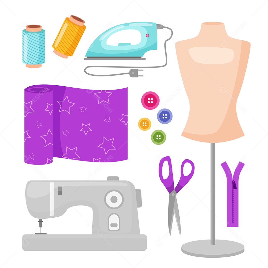 Equipamento para o trabalho de um conjunto de alfaiate Vetores EPS
