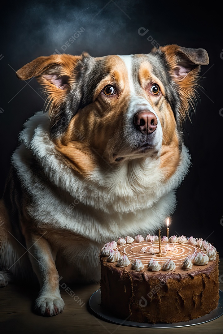 Retrato de um adorável cão doméstico comemorando um aniversário na ...