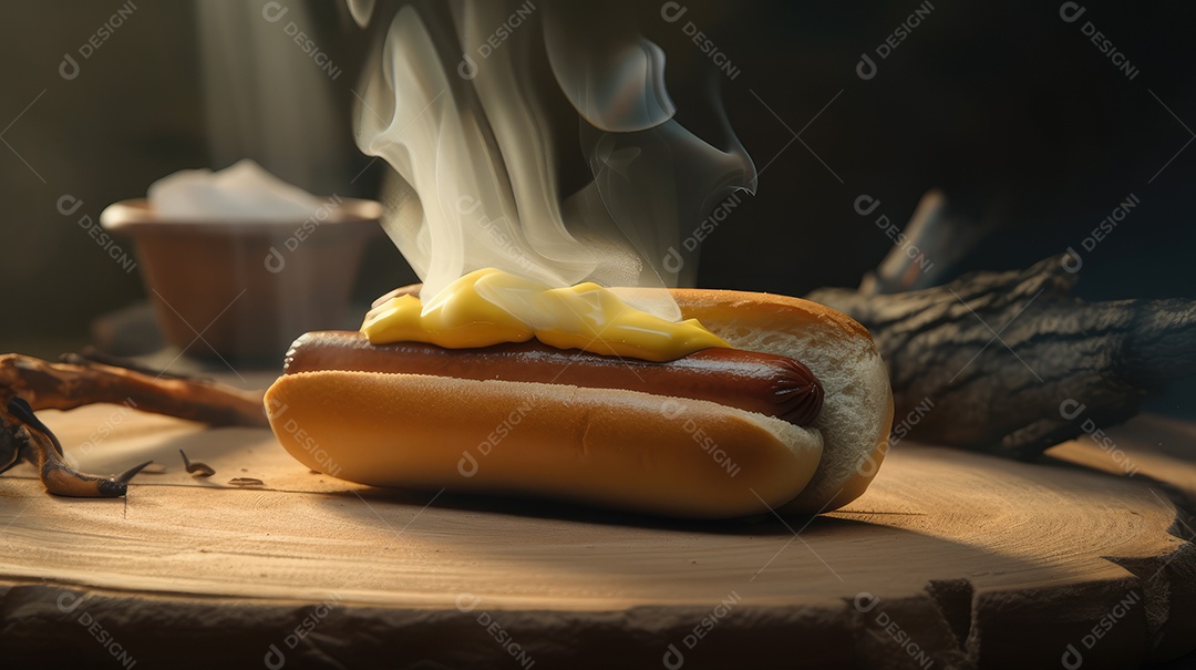 Cachorro-quente tradicional com salsicha, ketchup, mostarda e pão d...