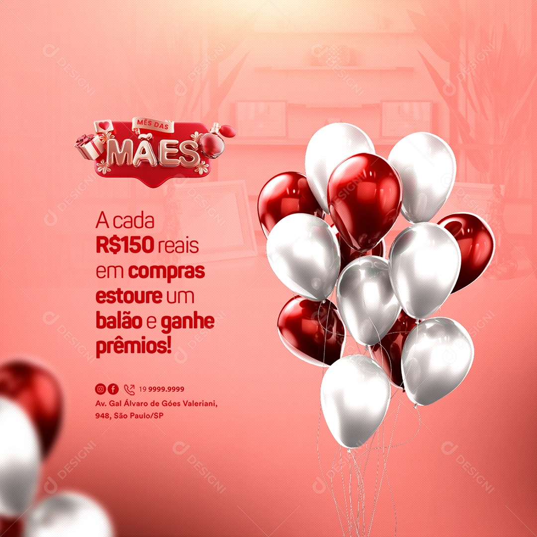 Campanha Publicitária Dia Das Mães 150 Reais Em Compras Estoure Um Balão Social Media PSD Editável