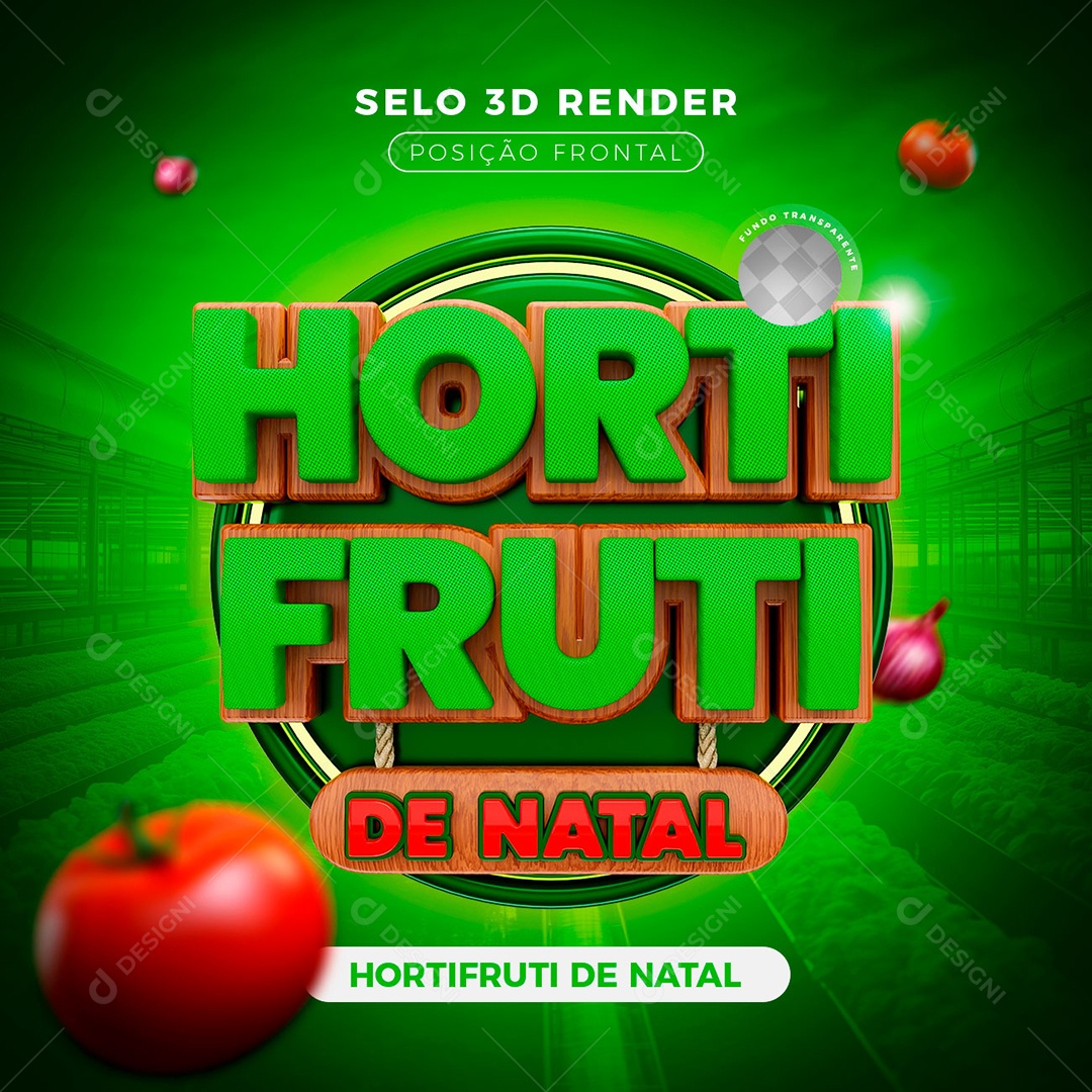 Hortifruti de Natal Selo 3D Verde Vermelho para Composição PSD