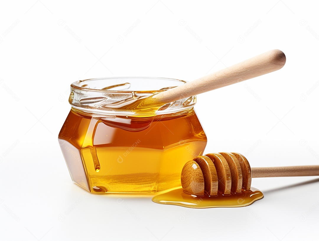 Mel no pote com uma colher de pau