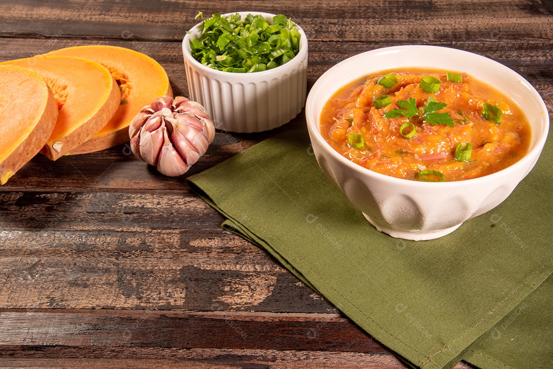 Creme de abóbora caseiro, acompanhado de especiarias. caldo de abób...