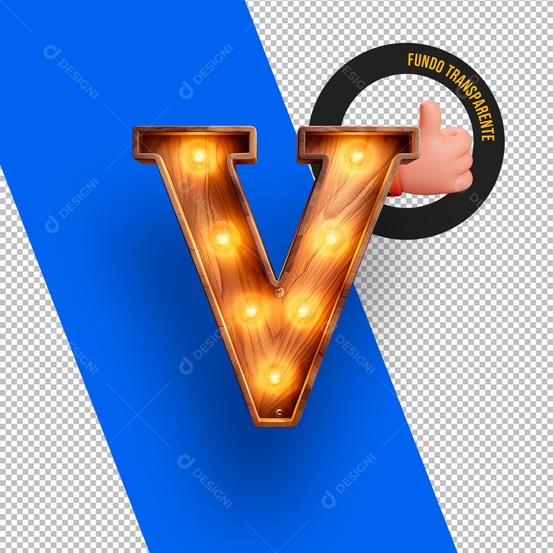 Letra V Maiúscula de Madeira Com Lâmpada de Led Elemento 3D Do Alfabeto Para Composição PSD