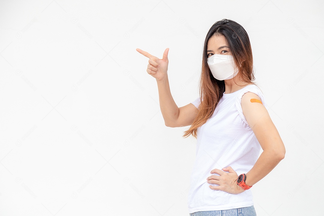 Mulheres Asiáticas Mostram Atadura No Braço. Mulher asiática feliz ...