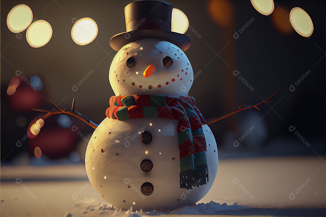 Boneco de neve decora a renderização 3D do festival Feliz Natal