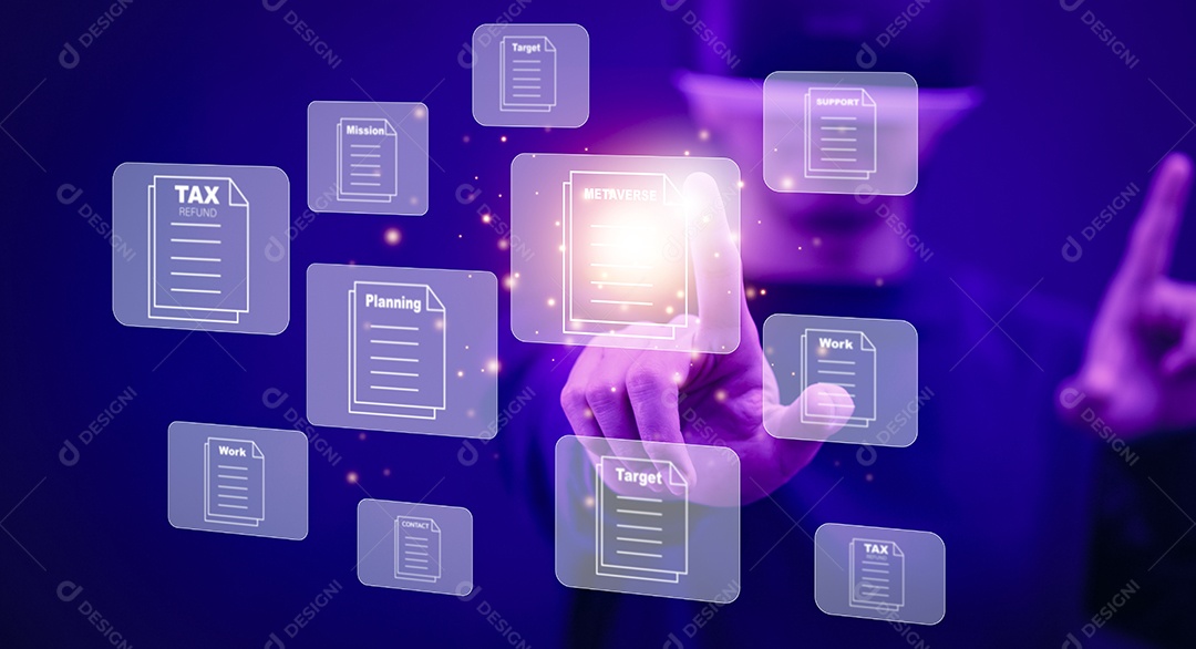 Mão de empresário toca pasta do sistema de gerenciamento de documen...
