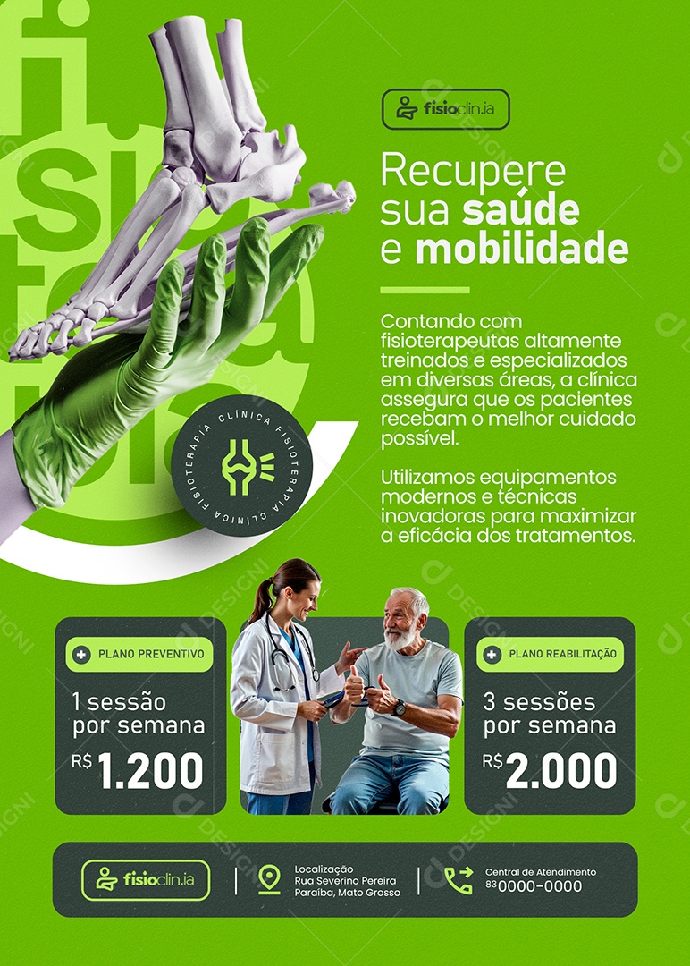 Flyer Fisioterapia Recupere sua Saúde e Mobilidade Social Media PSD Editável