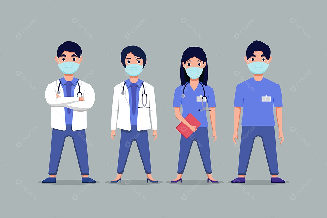 Ilustração de Equipe de Médicos Usando Máscaras EPS Editável