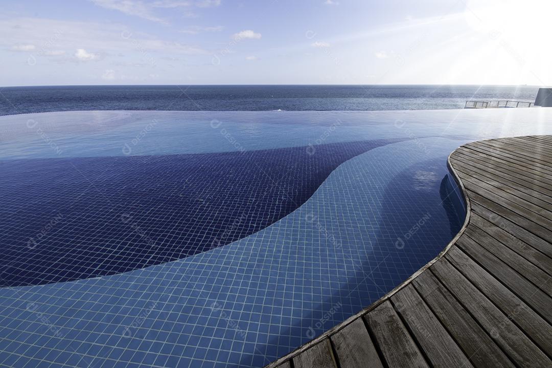 Piscina de Borda Infinita Com Vista para o Mar e Céu Azul Imagem JPG