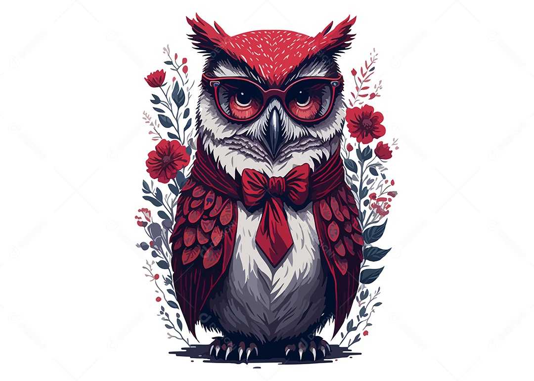 Ilustração De Arte De Design De Camiseta Coruja Com Gravata e Óculo...
