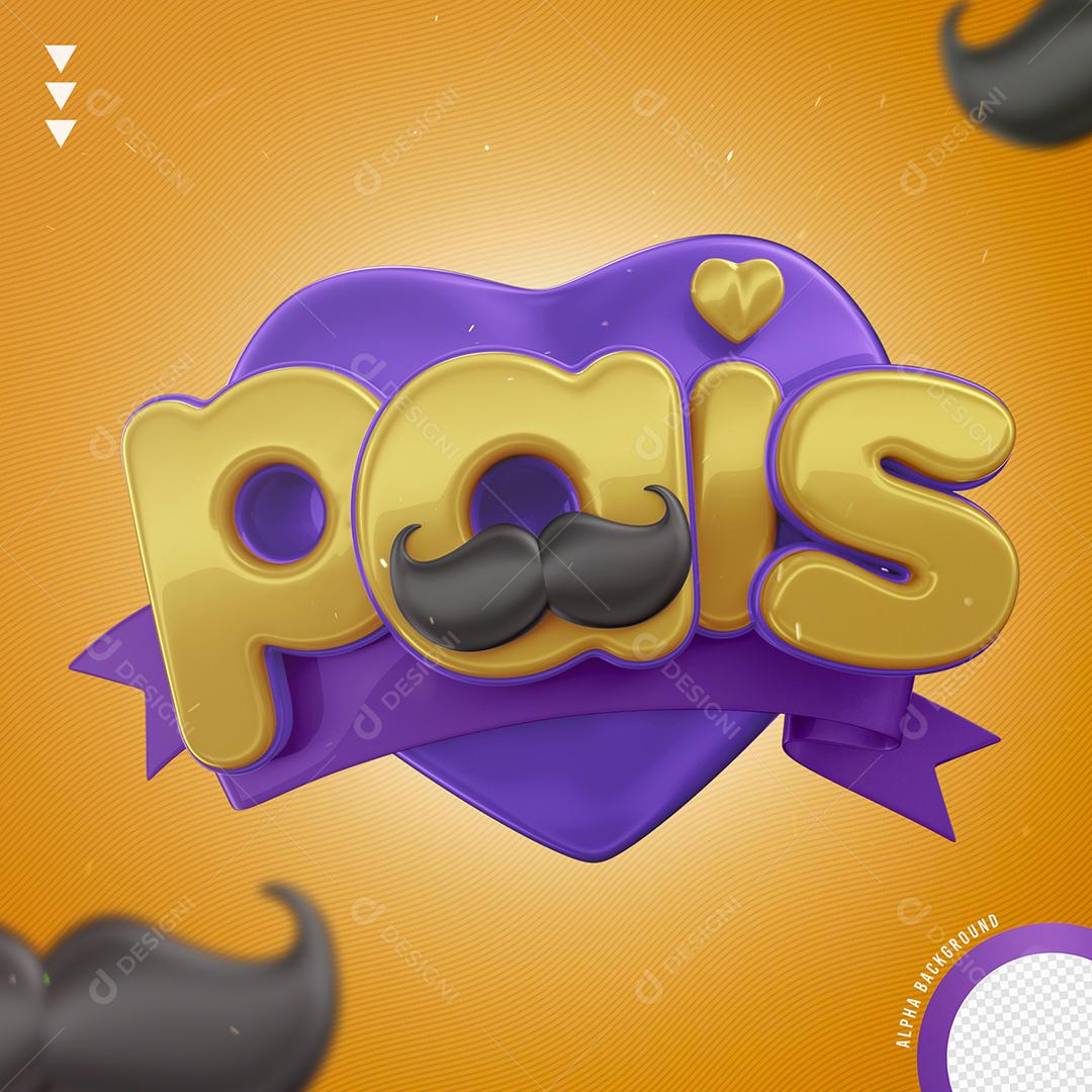Pais Selo 3D Dourado e Roxo para Composição PNG Transparente