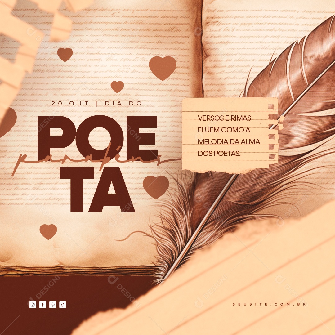 Dia do Poeta Versos e Rimas Fluem Como a Melodia da Alma dos Poetas Social Media PSD Editável
