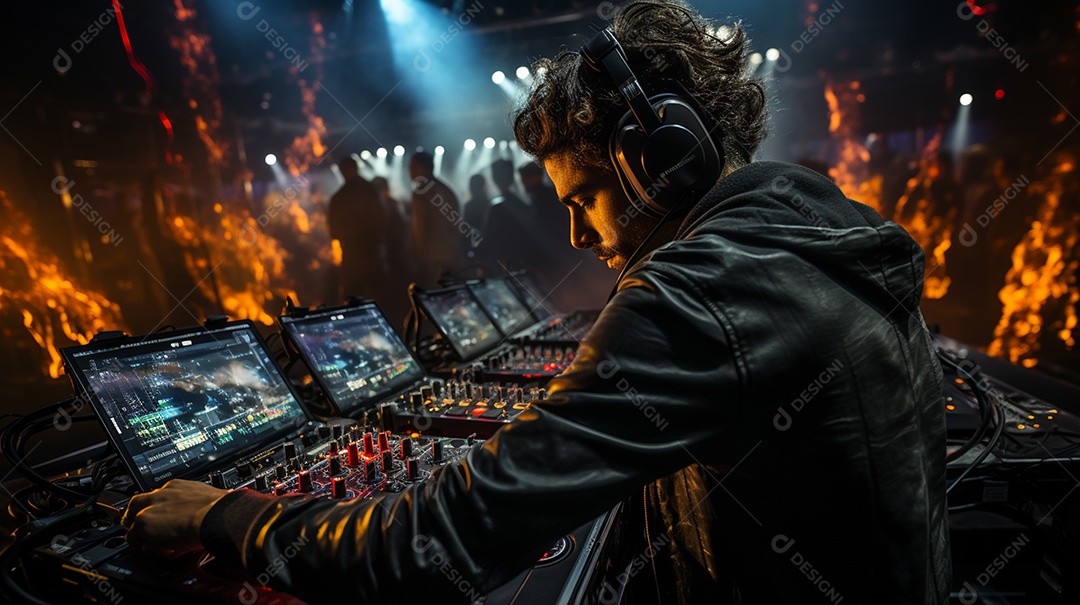 O DJ no centro da boate comanda o deck