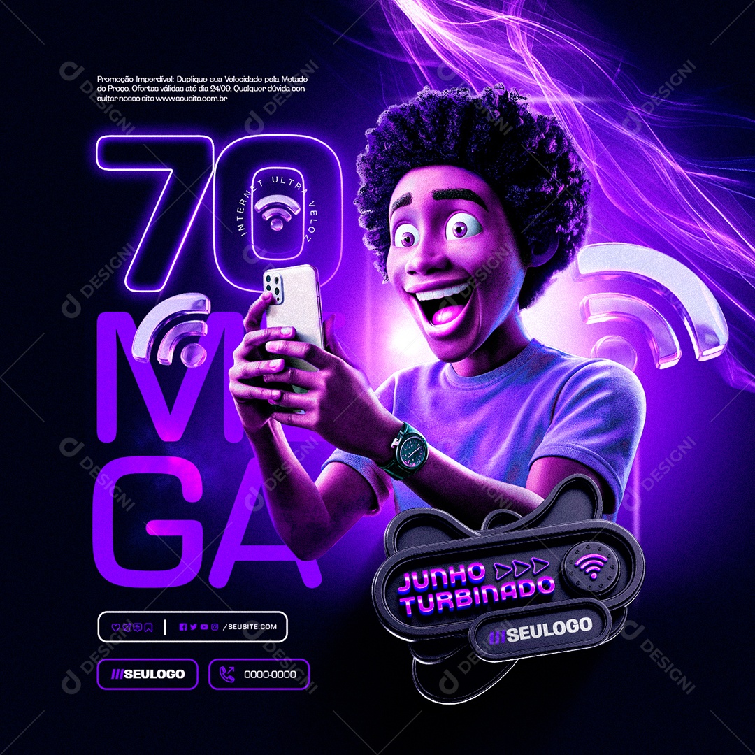 Provedor de Internet Junho Turbinado 70 Mega Social Media PSD Editável