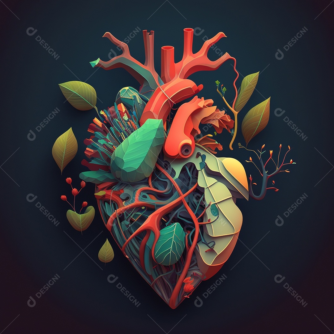 Conceito de cuidado do coração. Ilustração estilizada abstrata. Anatomia e fisiologia cardíaca. Órgão artificial. Dia mundial do coração. Medicina preventiva