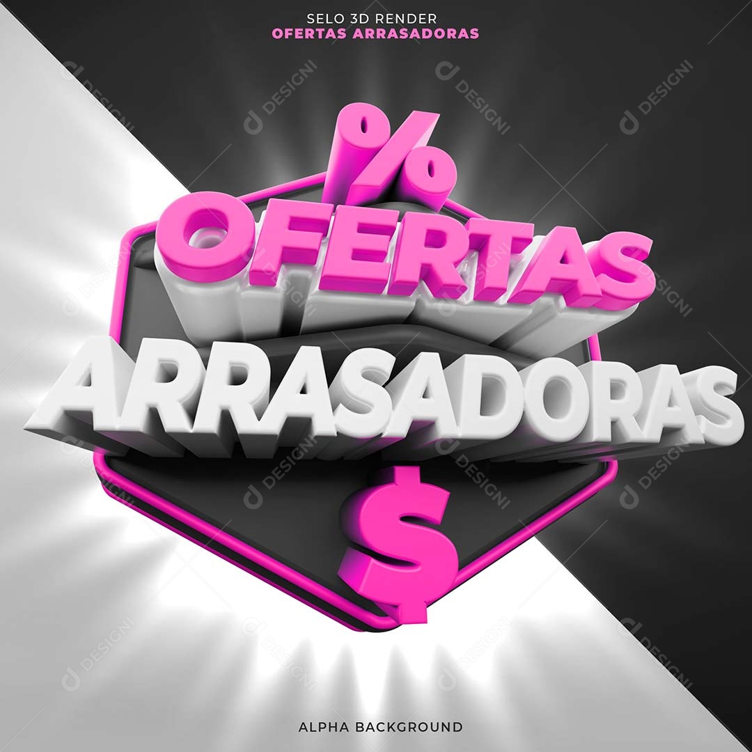 Ofertas Arrasadoras Selo 3D Roxo Branco para Composição PSD