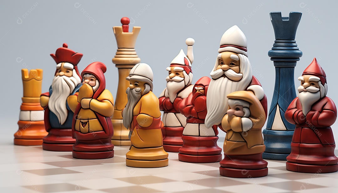 Um jogo de xadrez 3D exclusivo do Papai Noel onde o xadrez