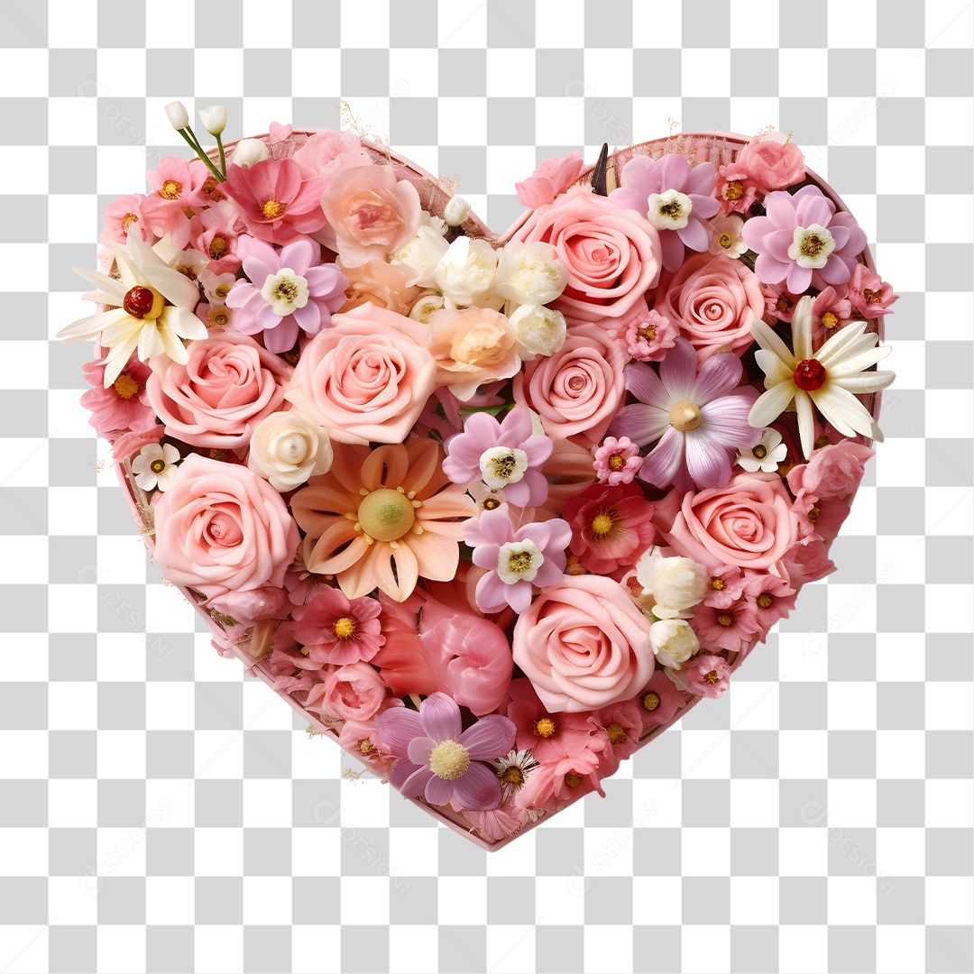 Flores Formando Coração PNG Transparente