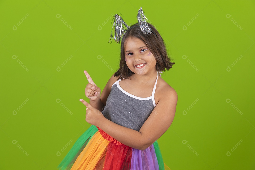 Linda menina jovem usando fantasia de carnaval sobre fundo isolado