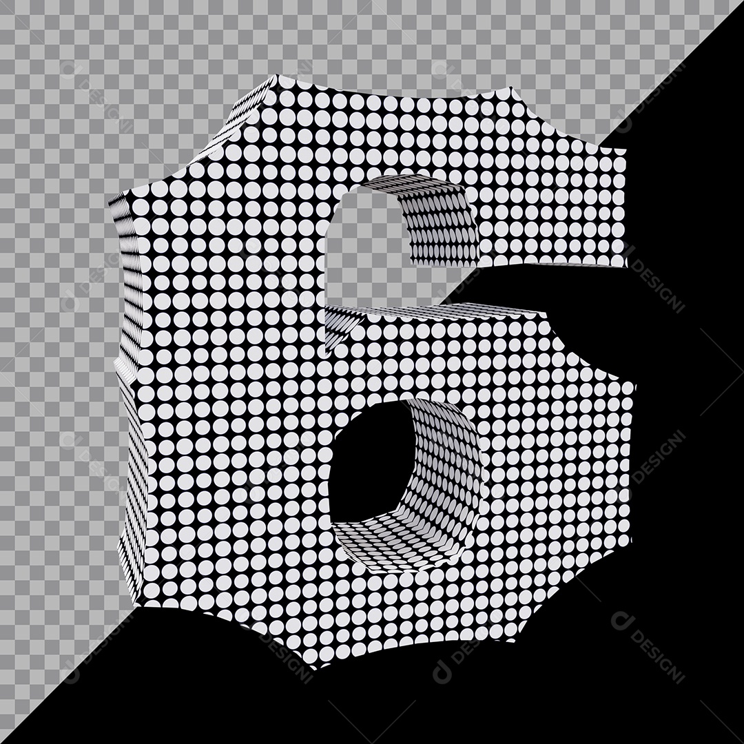 Elemento 3D Para Composição Número 6 Preta e Branco PSD