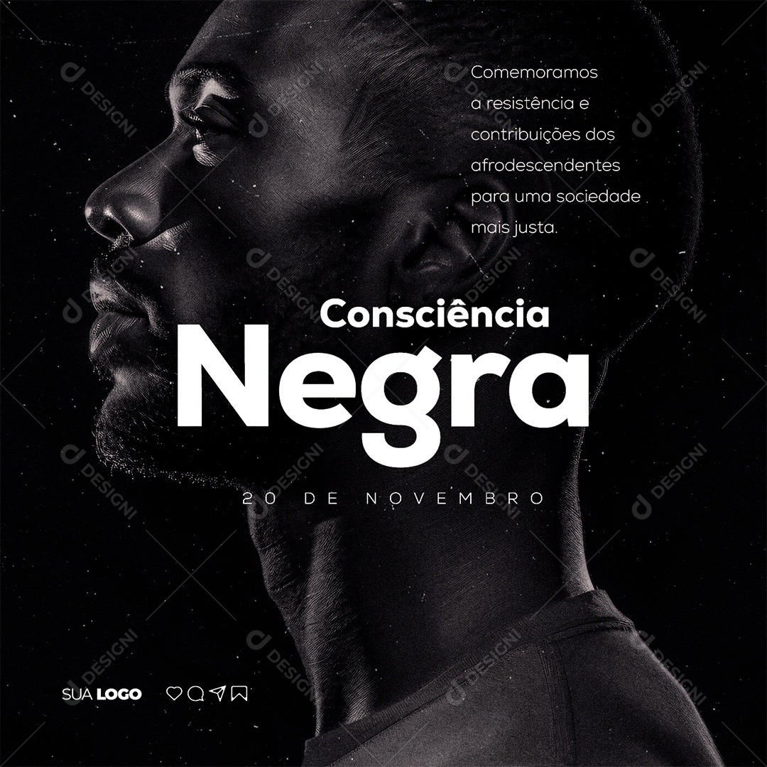 Social Media Dia da Consciência Negra Comemoramos a Resistência e Contribuições PSD Editável