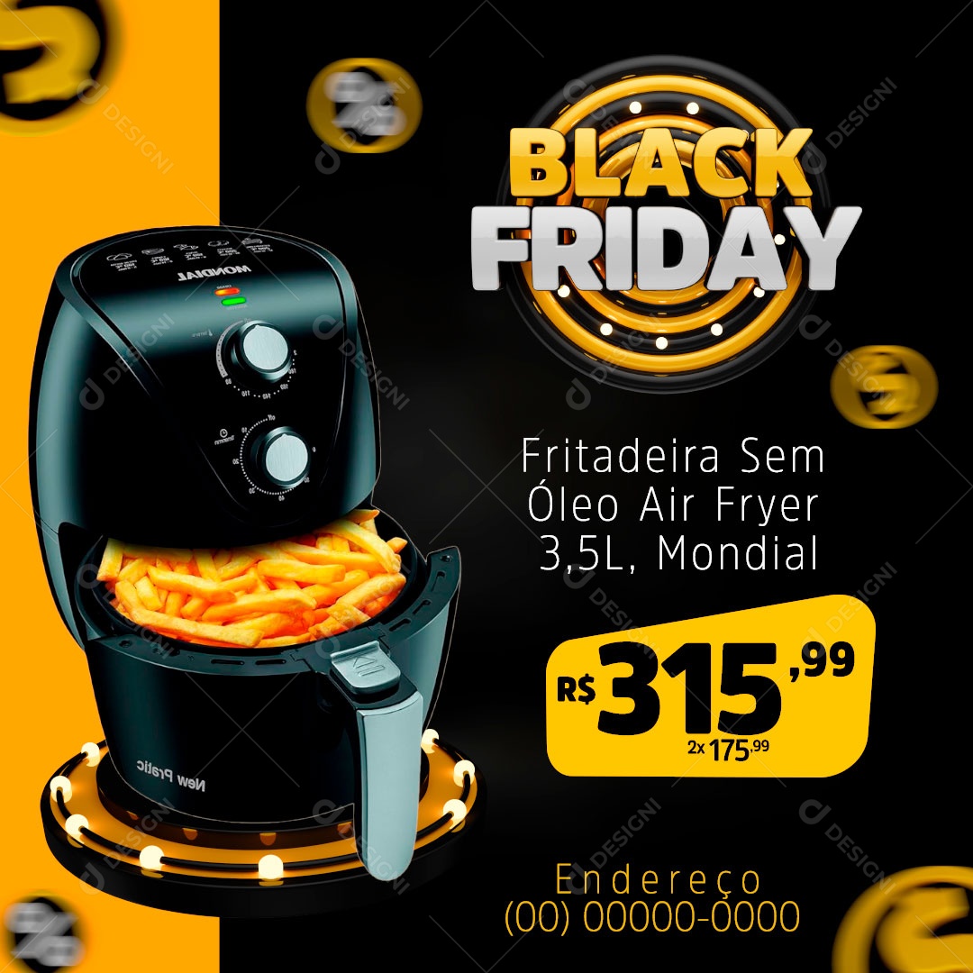Black Friday Fritadeira sem Óleo Air Fryer 3,5L Mondial Social Media PSD Editável
