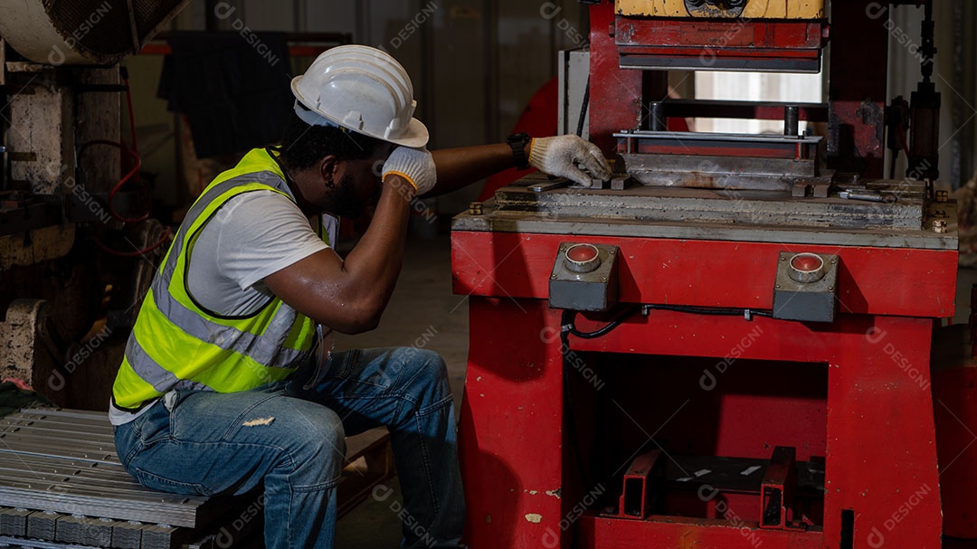 Afro-americano usando capacete de segurança, equipamento de segurança