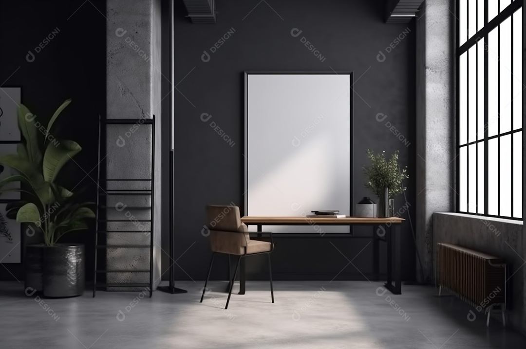 Maquete de quadro vertical, tela vazia em branco isolada no fundo branco do escritório em casa. Copie o espaço.