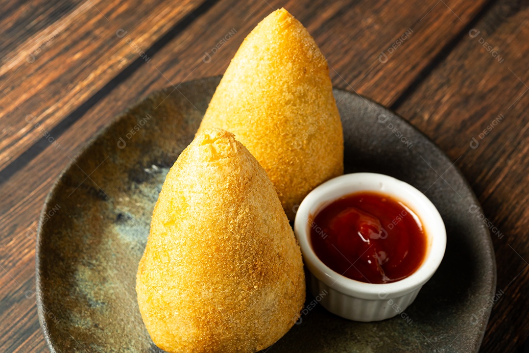 Coxinhas tradicionais brasileiras. salgadinho frito típico recheado...