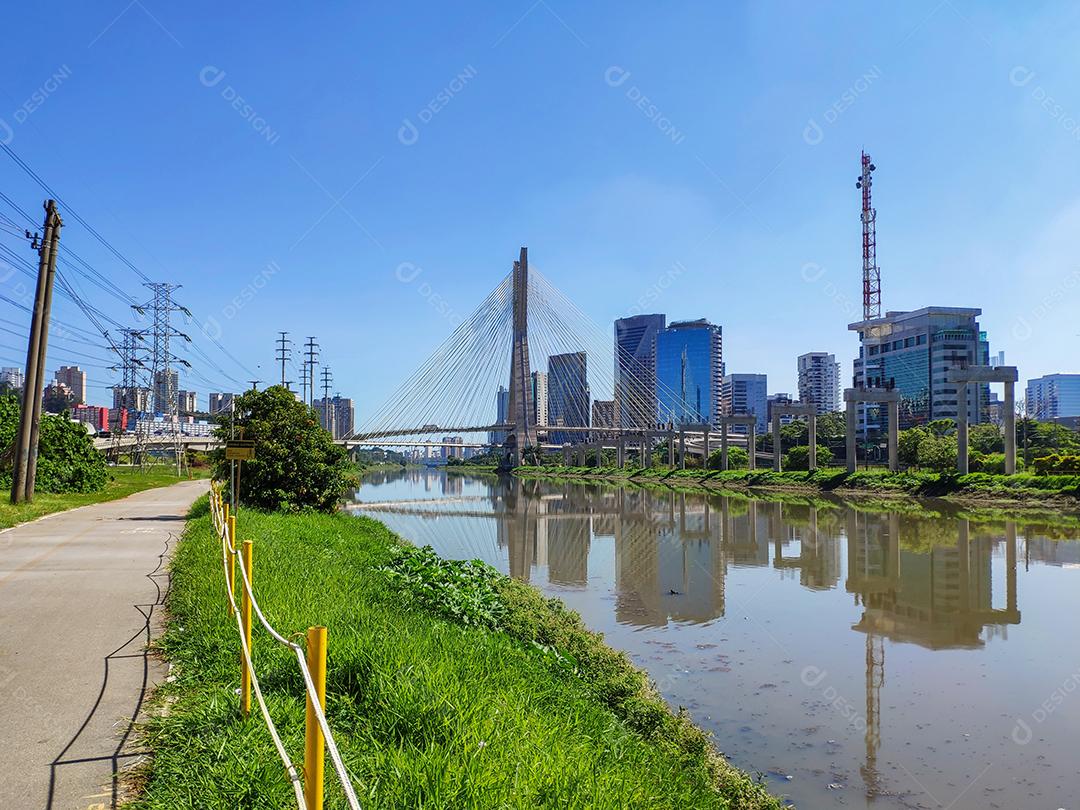 Vista da ponte estaiada da Marginal Pinheiros em São Paulo
