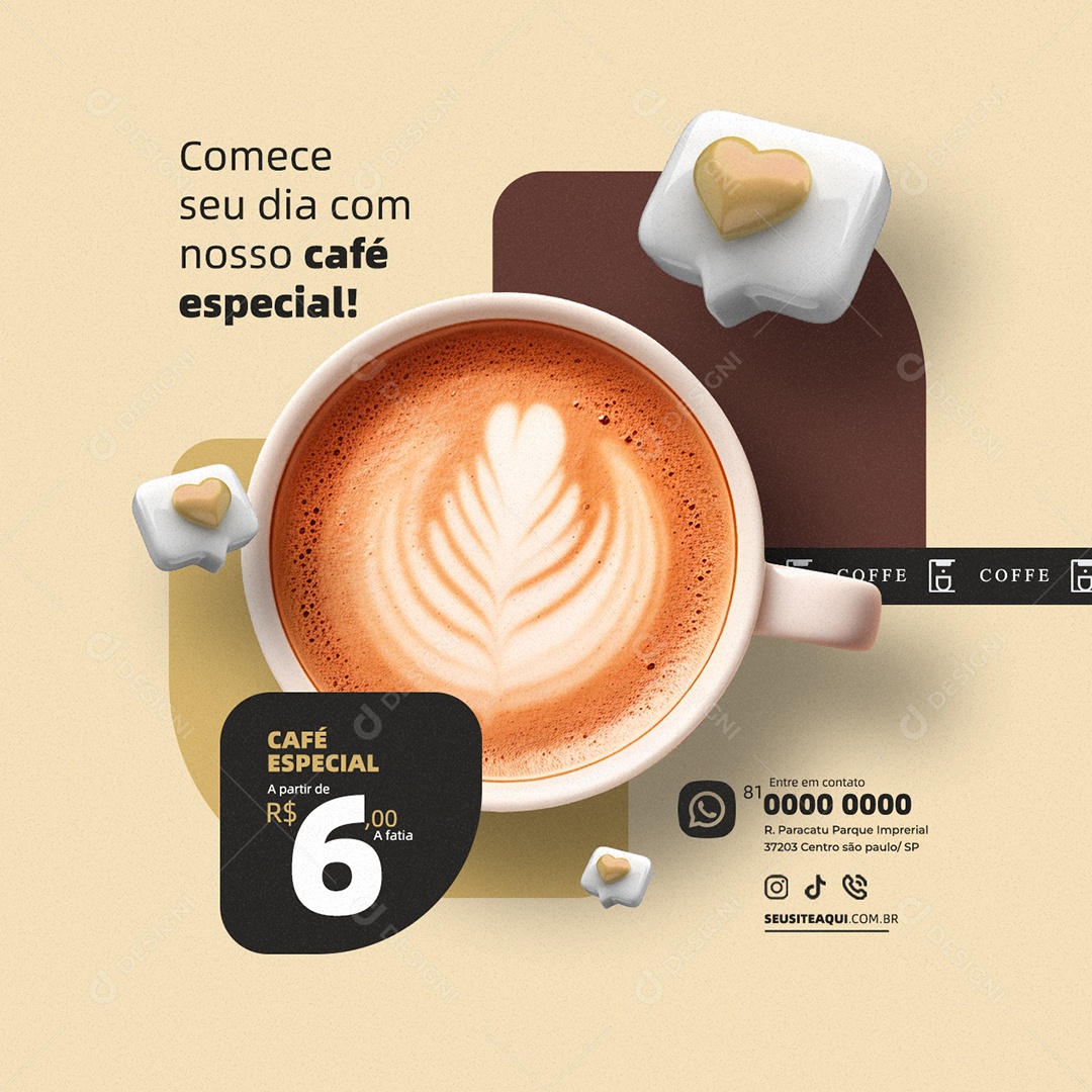 Cafeteria Comece seu Dia com Nosso Café Especial Social Media PSD E...