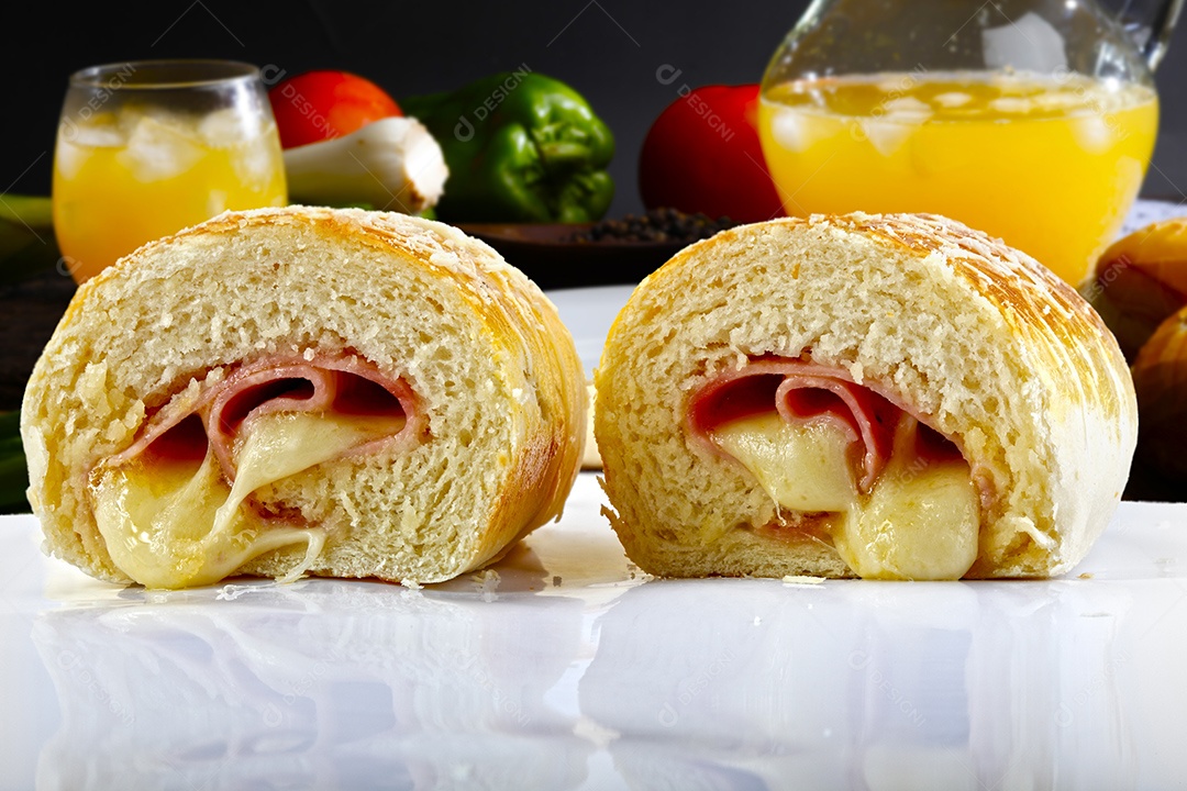 Petisco brasileiro com queijo e presunto