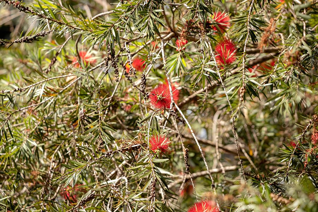 Flor Carmesim Bottlebrush da espécie Melaleuca citrina