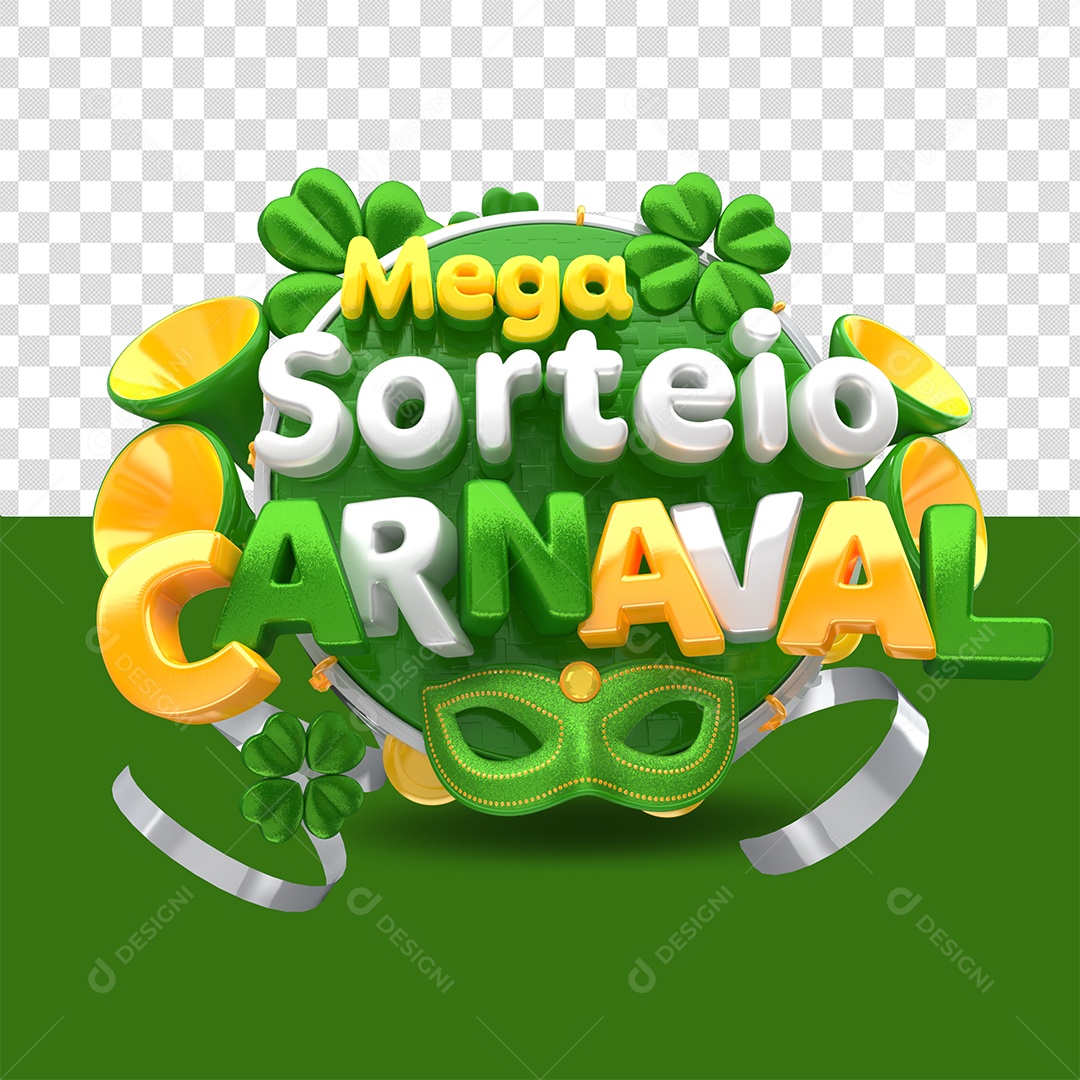 Selo 3D Mega Sorteio Carnaval Amarelo Verde e Cinza para Composição...