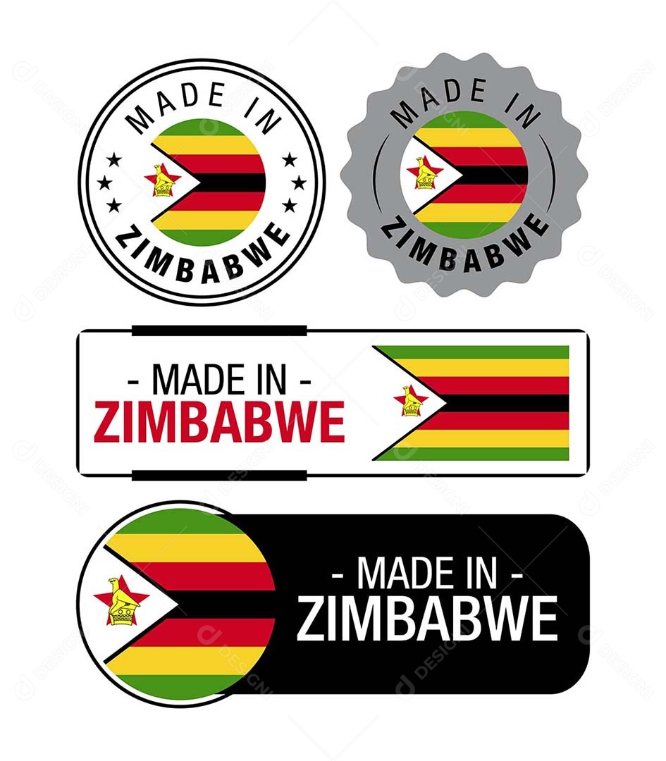 Etiquetas Made in Zimbábue Ilustração Vetor EPS