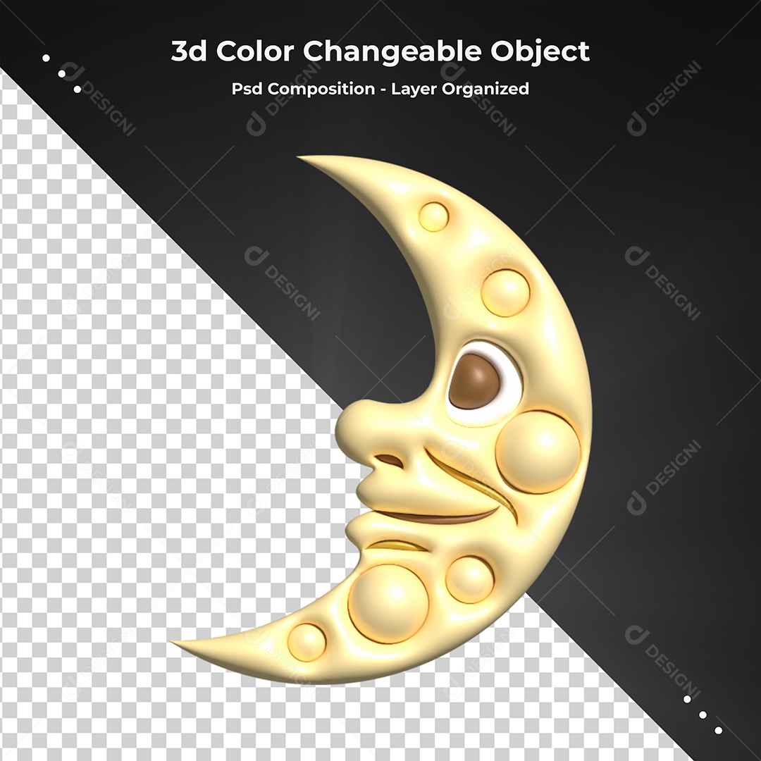 Emoji de Lua Crescente Dourado Elemento 3D PSD