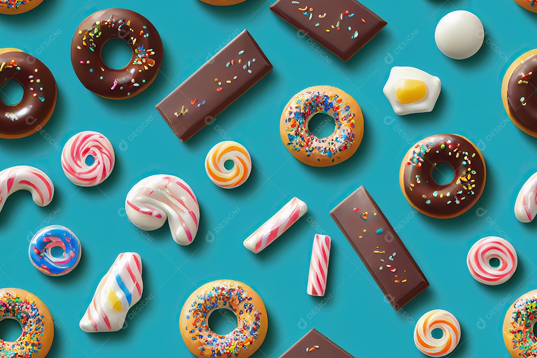 Textura de painel com ícones realistas de doces infantis rosquinhas