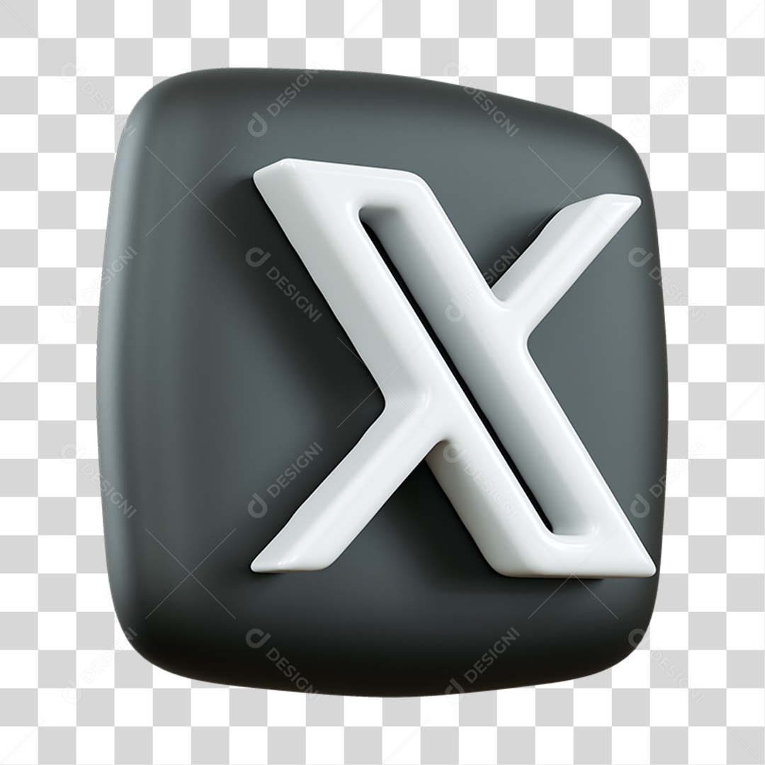 Ícone X do Twitter Elemento 3D para Composição PNG Transparente