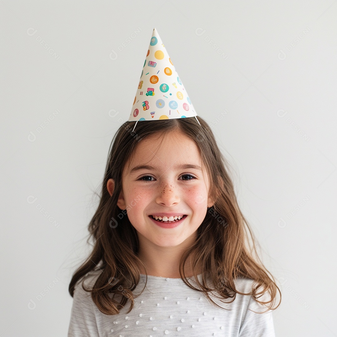 Linda garotinha sorridente usando chapéu de festa